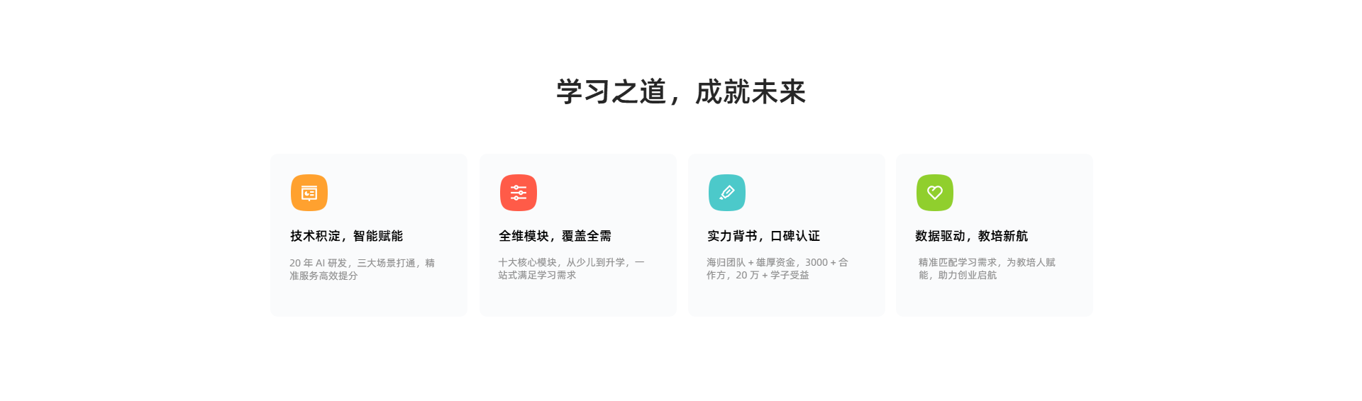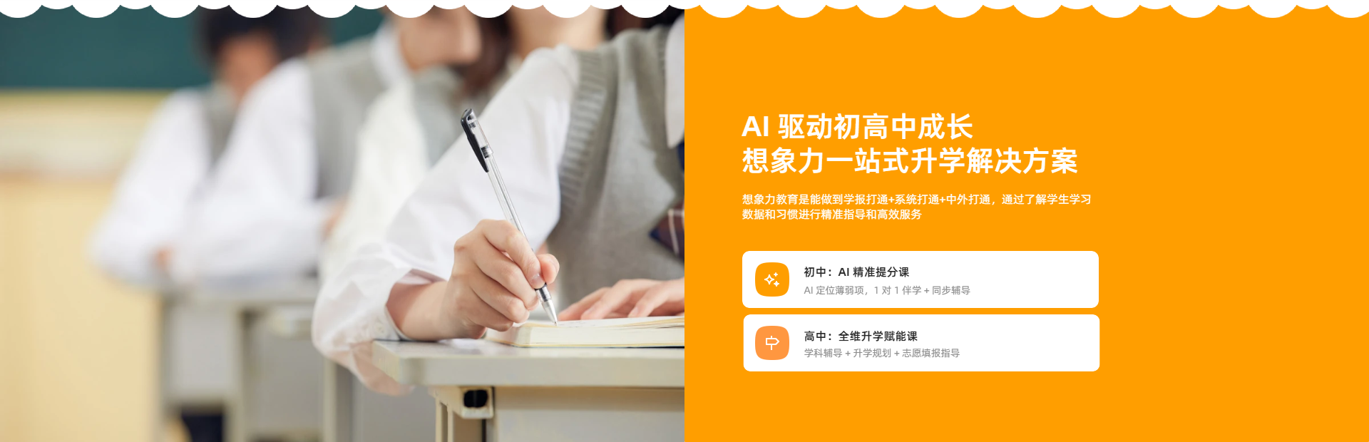 想象力教育科技有限公司依托于海归产品团队,人工智能先进技术,借互联网发力打造了智能测评、学业辅导、志愿填报、家庭教育、国际升学、中外研学、想象力少儿英语、真人1对1智能伴学十大模块,形成想象力教育特有的生态体系,为想象力智能学业辅导中心赋能。